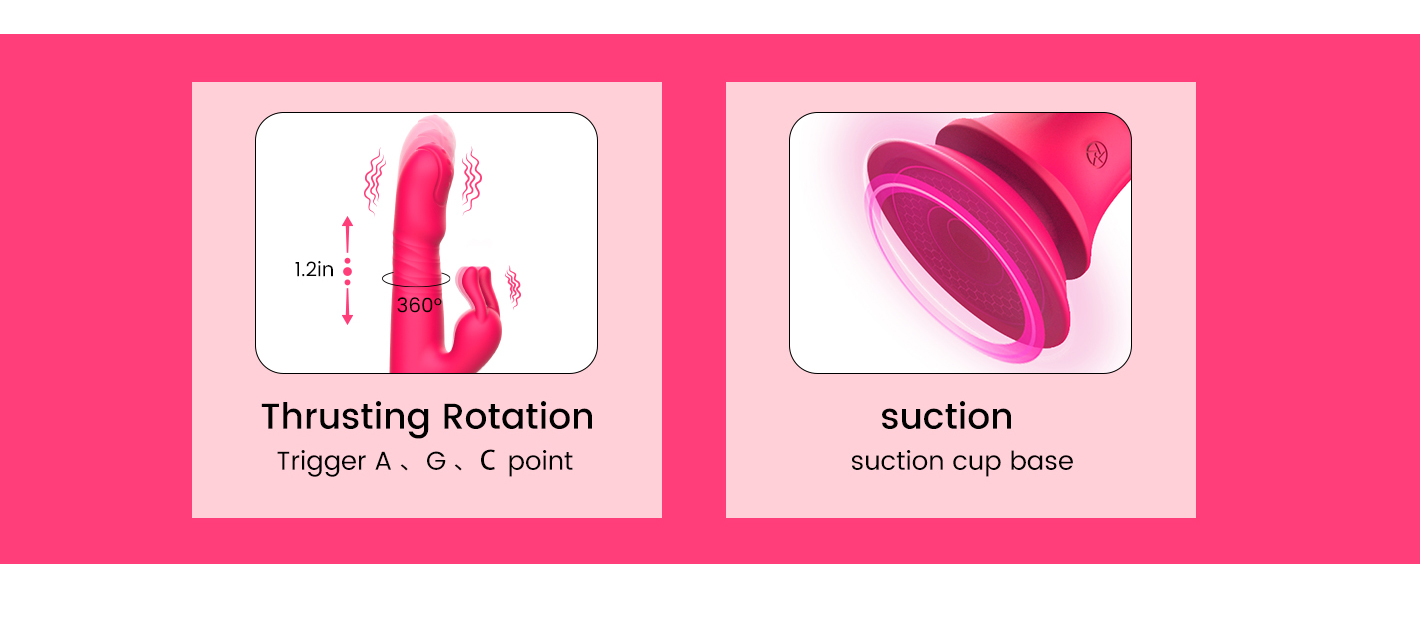A hands-free masturbation vibrator. The powerful suction cup of this vibrator can stand on multiple planes. Equipped with a rabbit vibrator that can tap the C- spot, a massage head that rotates left and right, telescopes up and down to stimulate the G-spot and clitoris at the same time, bring you double orgasms. 2 vibrating ends work in conjuntion with each other and vibrate at 10 frequencies, the different functions can be used in combination or controlled individually to produce an irresistible itching sensation, bringing you a unique and ultimate sexual experience.