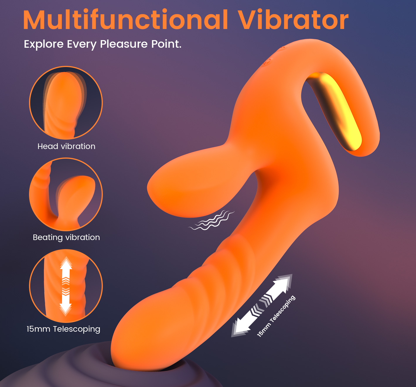 Experience truly customizable pleasure with our innovative vibrator. Its flexible body extends and contracts for a perfect, personal fit. Featuring dual vibrating heads, it delivers targeted stimulation to your A, C, and G-spots simultaneously, unlocking waves of unparalleled ecstasy.