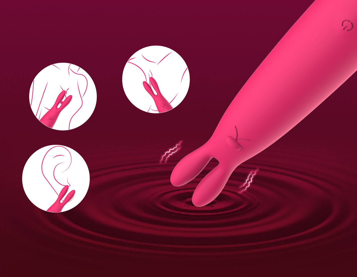 Cute bunny shape, 10 thrilling vibration patterns. IPX6-rated waterproof for worry-free wet fun. Flexible ears hug your clit, shaft targets G-spot โ pure dual stimulation.